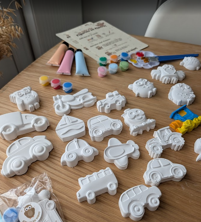- •Kit atelier platre: plâtre, moule, pinceaux, peinture non toxique, goblets